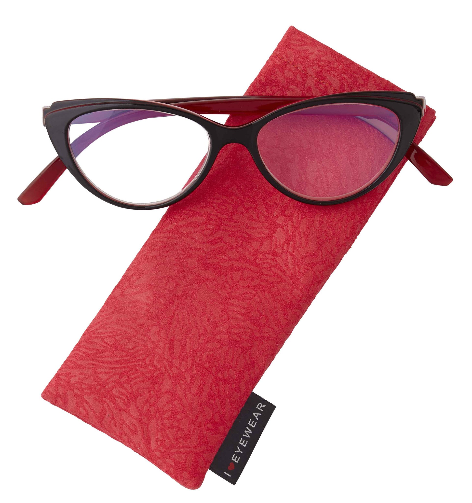 Really like the shape of the glasses. They are black in the front but red in the back which gets picked up in the front. Very pleased. Inge P. Long Island